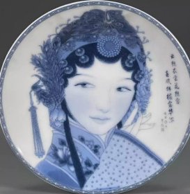 古董旧货瓷器老货收藏 大清乾隆年制青花花旦图纹赏盘