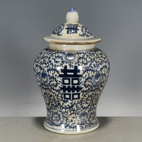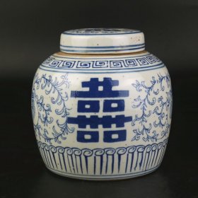 古玩瓷器老货旧货收藏 清代青花喜字罐全品