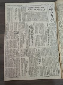 进步日报1952年4月12日毛泽东选集第二卷在全国发行,雷任民在第一小组会上的发言,刘子久在第二小组会上的发言,天津大学三反展览会闭幕,帝国主义指使下的蒋介石412大屠杀