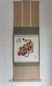 日本回流 政字款《布老虎图》(手绘) 纸本立轴 059