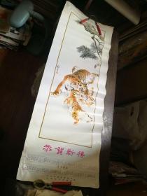 1984年刘继卣“老虎母子图’年历画 38.5乘105.5厘米