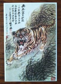 胡爽庵书画作品(张大千弟子,张大千书法题跋)老虎图名画【明信片1张】