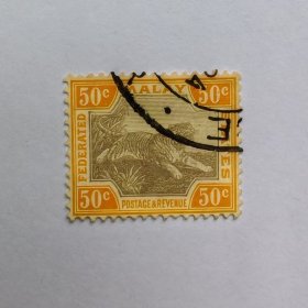 外国邮票 马来亚邮票雕刻版动物老虎马来虎 信销1枚 如图