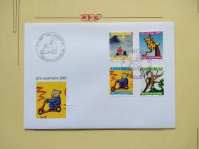 《外国集邮品收藏保真:列支敦士登2001年卡通漫画动物老虎熊猴子圣诞老人邮票首日封 品相如图》澜2207-13