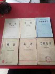 高等学校试用教材 英语第一册下、修改本、第二、三册、普通物理学第一册、无机化学下册共6本合售