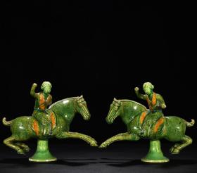 宋当阳峪窑绞胎绿釉马球蹴鞠塑像