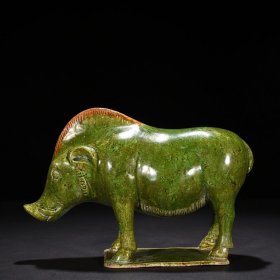 宋当阳峪窑绿釉绞胎野猪像 17*25厘米