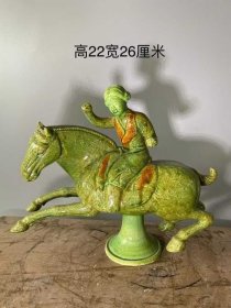 521_宋当阳峪窑绞胎绿釉马球蹴鞠塑像