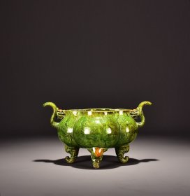宋当阳峪窑绞胎绿釉香炉高13宽22