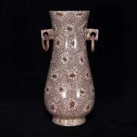 宋绞胎釉双耳活环瓶,17.5×8.5厘米a