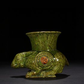 宋当阳峪窑绿釉绞胎兔尊 13*16厘米