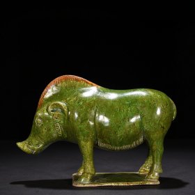 宋当阳峪窑绿釉绞胎野猪像17*25厘米