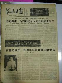 生日报河北日报1981年9月26日(4开四版) 人民群众是历史的创造者; 鲁迅诞生一百周年纪念大会在京隆重举行; 在鲁迅诞生一百周年纪念大会上的讲话;