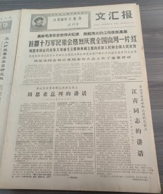 文汇报1968年9月10日首都十万军民集会热烈庆祝全国山河一片红在北京市革命群众庆祝大会上江青同志周恩来总理的讲话,枫围公社红星大队上海国棉二十一厂