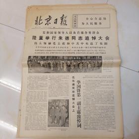北京日报,1976年7月12日四开四版,朱德同志为共产主义事业奋斗的一生;党和国家领导人以及首都各界群众隆重举行朱德同志追悼大会;在朱德同志追悼大会上,华国锋第一副主席致悼词。
