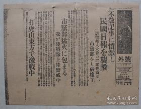 民国老报纸:新爱知号外(1932年1月13日)不敬记事愤激,民国日报袭击,青岛居留日本人大会群众押寄,破坏青岛市党部,日军陆战队上陆警备,青岛市党部猛火包围,打虎山东方激战中