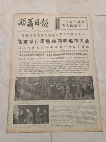 西藏日报1976年1月16日。今日六版。党和国家领导人以及首都各界群众代表,隆重举行周恩来同志追悼大会。邓副主席在周恩来同志追悼大会上致悼词。周恩来同志为共产主义事业光辉战斗的一生。