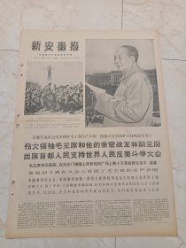 新安徽报1970年5月22日。四版。伟大领袖毛主席和首都军民支持世界人民反美斗争大会,毛主席神采奕奕在天安门城楼上亲切的向广场上数10万革命群众招手。