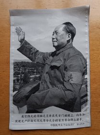 杭绣29x19cm 中国杭州东方红丝织厂 我们伟大的领袖毛主席在天安门城楼上,向参加庆祝无产阶级*****大会的百万革命群众招手。 稀有的库存品相,未裁边,裁边后尺寸 18*27公分 宣传画