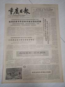 生日报老报纸重庆日报1965年10月19日(4开四版)面向农村负责到底;西哈努克亲王在金边群众欢迎大会上作报告;采取有效措施减轻学生负担;长寿机械厂制成一种农用粉碎机。