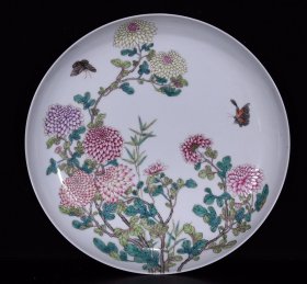 清雍正粉彩菊花花卉纹盘