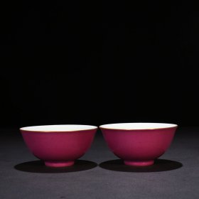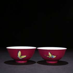 清雍正胭脂红釉粉彩三秋图碗