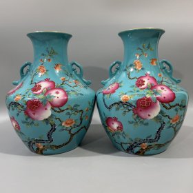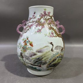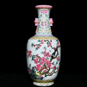 清雍正粉彩花鸟纹双耳瓶
