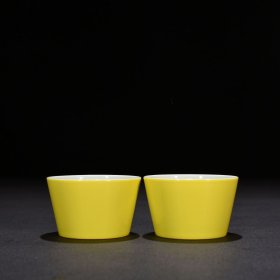 清雍正柠檬黄釉粉彩桃纹杯