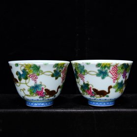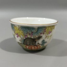 清雍正粉彩松鼠葡萄多子多孙纹杯