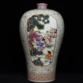 清雍正粉彩开窗婴戏图梅瓶