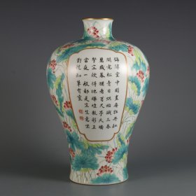清雍正年制粉彩荷花纹开窗题诗文梅瓶