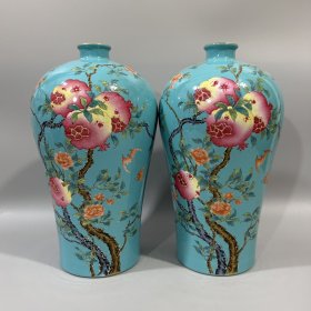 清雍正绿地粉彩石榴梅瓶