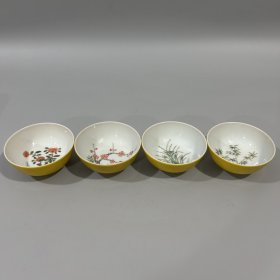 清雍正外黄内粉彩梅兰竹菊杯一套