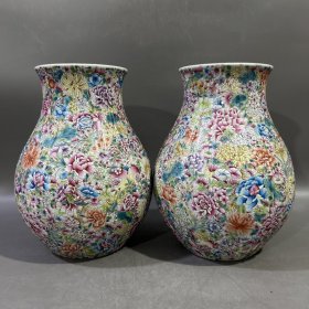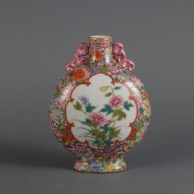 清雍正年制粉彩万花开窗花卉纹小扁瓶