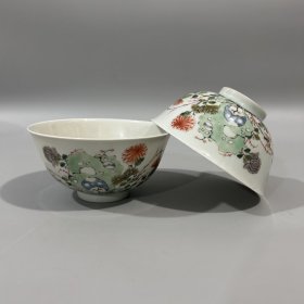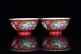 清雍正年粉彩西洋人物纹碗一对7*5cm