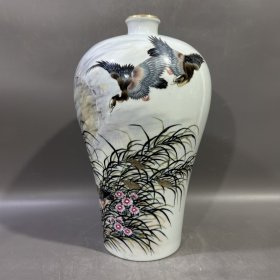 清雍正粉彩花鸟梅瓶