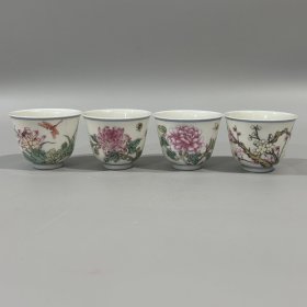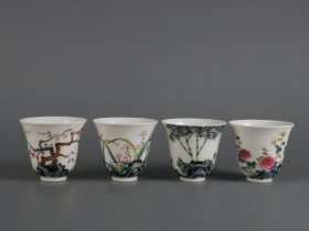 雍正年粉彩四季花卉杯一套