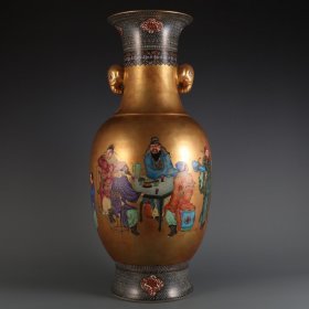 清雍正御制金地粉彩人物故事象耳瓶