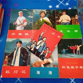 八大样板戏:革命现代京剧——1,红灯记。2,海港。3,杜鹃山。4,龙江颂,。5,红色娘子军。6,沙家滨。7,智取威虎山。8,奇袭白虎团。(8本合售,包老包真,请参考补图及说明)