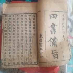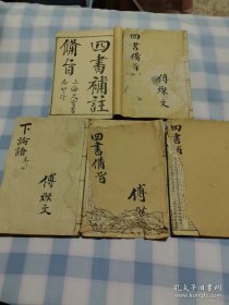 四书补注备旨(大学、中庸一册,上孟卷之一卷之二、卷之四、上论卷之一卷之二、下论卷之三卷之四)现存五册,中华民国五年,包老保真