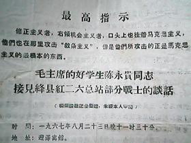 (1967年资料)《毛主席的好学生陈永贵同志接见绛县红二六总站部分战士的谈话》