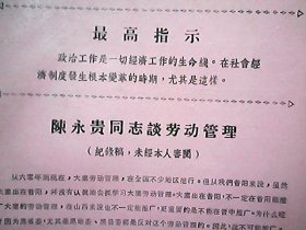 (1967年)《陈永贵同志谈劳动管理》