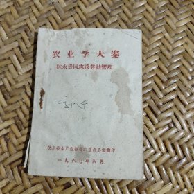 农业学大寨陈永贵同志谈劳動管理