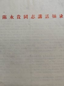 **时期,《陈永贵同志谈劳动管理》纪录稿,品相如图