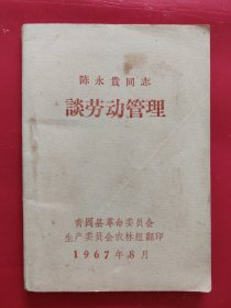 陈永贵同志谈劳动管理(有最高指示)1967年10月.64开