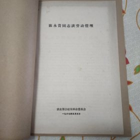 陈永贵同志谈劳动管理陈永贵同志再谈劳动管理