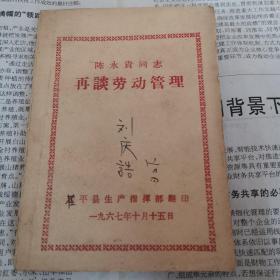 管理也是社教陈永贵同志谈劳动管理。