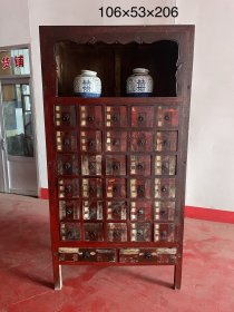 民间老中医手里中药柜,原包浆,老皮壳。带喜字罐一对,长106cm,厚53cm,高206cm