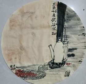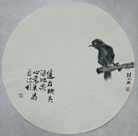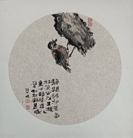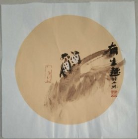 书画名家笔墨真迹 著名禅意书画家贾双林花鸟作品:吃茶闲扯