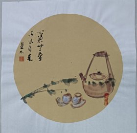 书画名家笔墨真迹,著名禅意书画家贾双林扇面花鸟作品:禅茶一味